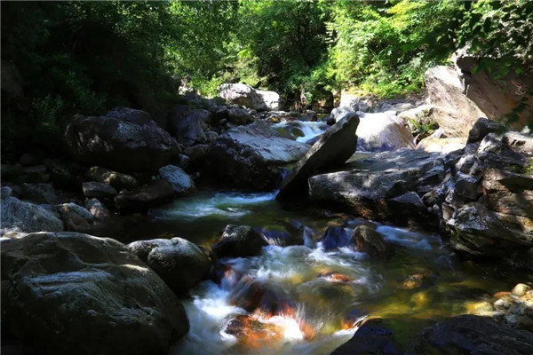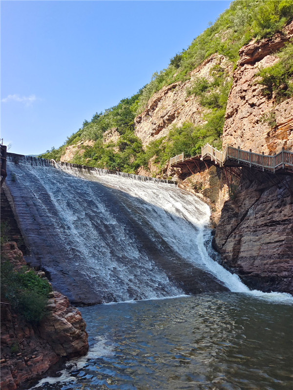 初秋時節(jié),雨后的青要山,巖石間、峽谷里、大壩處,泉水纏繞、流水淙淙,飛瀑流泉依青山的美景處處可見。