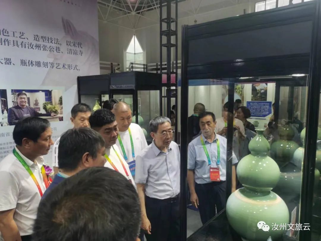7月21日—24日的展會期間,汝州展區(qū)作品一經(jīng)亮相,就吸引了廣大陶瓷愛好者的目光。與會的中陶協(xié)領(lǐng)導(dǎo)、各省協(xié)會領(lǐng)導(dǎo)、陶瓷行業(yè)大師、美院教授和評委專家等都對汝州陶瓷業(yè)近年來的發(fā)展給予了很高的贊譽(yù)。特別是中國輕工業(yè)聯(lián)合會副會長、中國陶瓷工業(yè)協(xié)會理事長杜同和、中國陶瓷工業(yè)協(xié)會常務(wù)副理事長吳越申等領(lǐng)導(dǎo)專題到汝瓷展區(qū)參觀指導(dǎo)工作,對汝瓷近年來的發(fā)展給予充分肯定和高度贊揚(yáng),并對下一步汝瓷產(chǎn)業(yè)高質(zhì)量發(fā)展提出指導(dǎo)意見。
