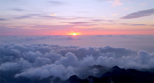 八百里伏牛遙遙東望。堯山之巔,兩千多米的海拔,山峰高峻,直入白云深處,視野開闊,成就“中原第一日出”的美譽。