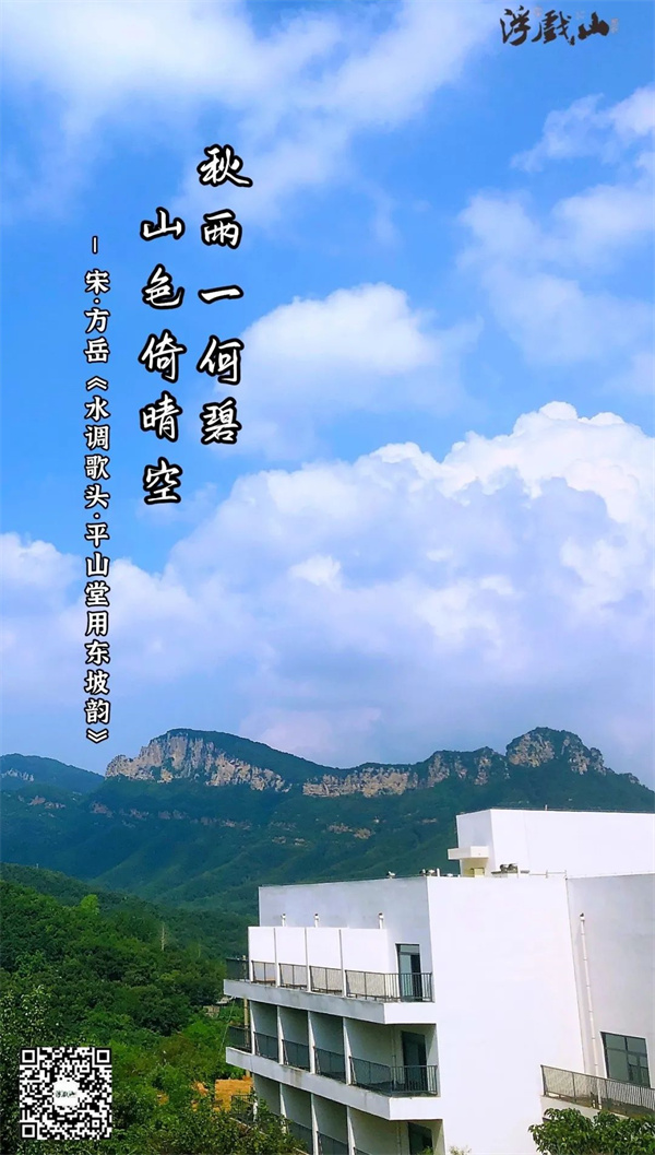 在浮戲山雪花洞廣場佇立遠望,秋雨過后,遠處“圣母觀天”的山體在晴空的映襯下分外青碧。遠山如黛,山林青蔥,四白落地的白色建筑在藍天白云下,給人帶來一種放松、簡單的溫馨感。