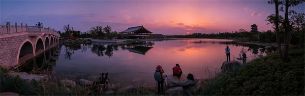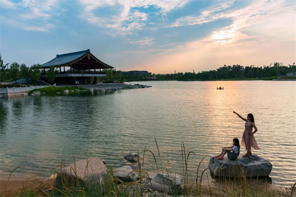 夕陽(yáng)慢慢墜落,漸漸沉入湖面,亦昭示著涼爽夜晚的到來(lái)。乘坐游船吹吹湖風(fēng),或是騎腳踏車游園觀景,所有的煩躁在此刻仿佛被按下暫停鍵,取而代之的只有舒適和愜意。
