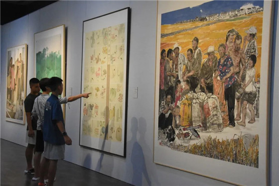 展覽現(xiàn)場,川流不息。巍峨太行山、秀麗大別山、壯觀紅旗渠、人民的好干部焦裕祿、三夏麥?zhǔn)盏霓r(nóng)民、日新月異的新農(nóng)村、難忘的大學(xué)生活、熱鬧的集市、生機勃勃的中原大地……一幅幅美術(shù)精品,講述一個個生動的故事和一幕幕優(yōu)雅動人的場景,展現(xiàn)了古老厚重的河南、日新月異的河南、活力四射的河南、山清水秀的河南和在新時代奮勇前進(jìn)只爭朝夕的河南。