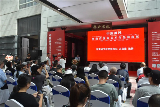 河南省文聯(lián)黨組書記方啟雄在致辭時說,“中原畫風(fēng)·河南省優(yōu)秀美術(shù)作品巡展”是河南文藝工作者積極擔(dān)當(dāng)使命、奮發(fā)有為,努力創(chuàng)造屬于我們這個時代的新文化的積極舉措,希望通過此次展覽,讓海南人民感知厚重文化中原,觸摸華夏文明根脈,欣賞“中原畫風(fēng)”的藝術(shù)魅力,在美術(shù)作品中“行走河南、讀懂中國”。