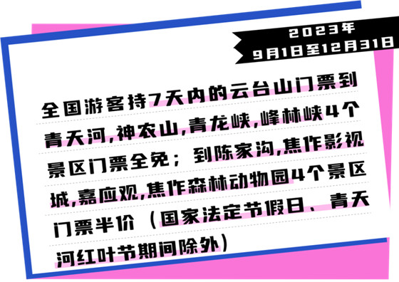 9月來啦,云臺山福利新規(guī)有哪些?持云臺山門票享多景區(qū)免票?乘坐高鐵也可免門票?60歲老人、6歲兒童也是免門票?……一起來了解一下吧~