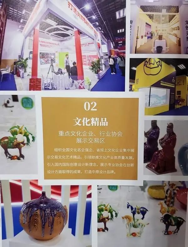 一、文化產業(yè)綜合館:該區(qū)域設置了城市印象、文化精品、探尋文明、絲路之旅等4個展示交易區(qū)。其中,“城市印象”區(qū)主要展示省內17個省轄市、濟源示范區(qū)、鄭州航空港經濟綜合實驗區(qū),以及部分中部省市、文博會聯(lián)盟城市等文化產業(yè)高質量發(fā)展成果;“文化精品”區(qū)主要展示交易全省乃至全國文化名企強企、專業(yè)協(xié)會的藝術精品、文化項目;“探尋文明”區(qū)主要是結合“數字技術+實物展品”展示考古新發(fā)現(xiàn),搭配博物館文創(chuàng)產品,讓文物活起來;“絲路之旅”區(qū)主要展示“一帶一路”沿線國家、城市的異域文化產品和特色文化產業(yè)項目,推動不同文化的交融互鑒。