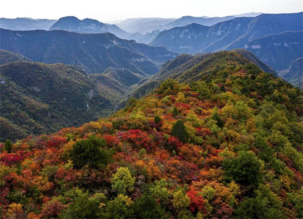 從谷底到山巔,數(shù)十里彩林綿延不斷,所見之處皆是眼花繚亂的五彩顏色,紅的浪漫、黃的唯美、綠的奪目……