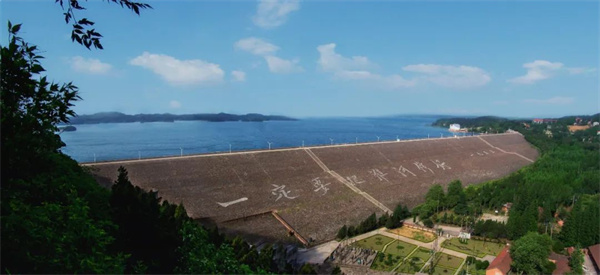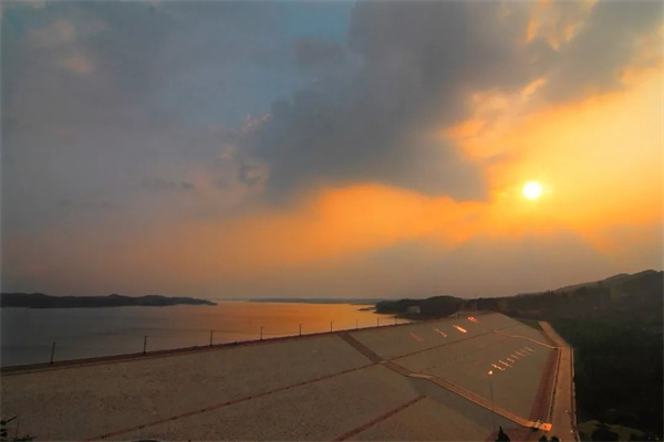 南灣湖大壩長(zhǎng)816.5米,壩頂寬8米,壩高38.3米,最大攔蓄水量為16.3億立方米,大壩正面有毛澤東所題的“一定要把淮河修好”八個(gè)大字,氣勢(shì)恢宏,山水相融,美輪美奐,流光溢彩,體現(xiàn)了人與自然的和諧之美。