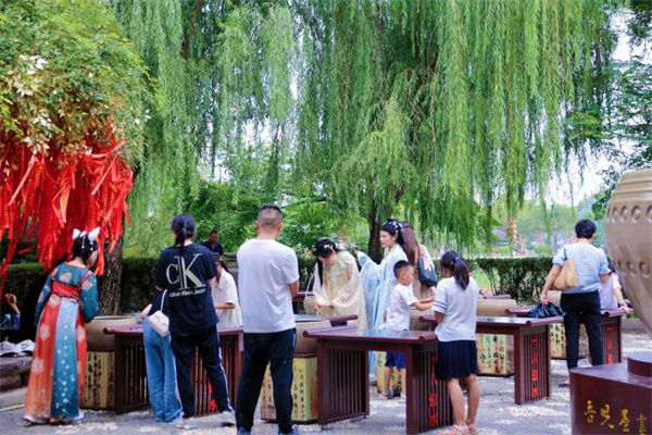 “十八缸”自擺放以來,參觀體驗的游客絡(luò)繹不絕。提筆寫字的瞬間大家屏息凝神,專心致志,對每一個筆畫,每一個字都飽含期盼。