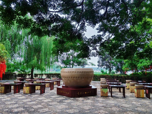 翰園新場景“十八缸”位于榕樹亭廣場,“十八缸”由十八個小水缸、十八張練字臺和一個大水缸組成,練字臺上擺放著毛筆。