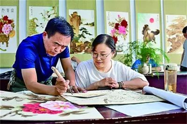 “我在烙畫(huà)廠工作幾十年,見(jiàn)證了南陽(yáng)烙畫(huà)的發(fā)展。南陽(yáng)烙畫(huà)主要工序有構(gòu)圖、選材、起烙樣、烘燙、題款、裝裱等,技法有平烘、撕毛、點(diǎn)皴等,題材涵蓋人物、山水、花鳥(niǎo)等。南陽(yáng)烙畫(huà)在傳承木板、宣紙、絲絹烙畫(huà)的基礎(chǔ)上,創(chuàng)新了絲絹套色烙畫(huà),使得絲絹套色烙畫(huà)在傳承傳統(tǒng)烙畫(huà)古色古香、古樸典雅的同時(shí),增添了更多的藝術(shù)表現(xiàn)形式,色彩華麗逼真、內(nèi)涵豐富。”南陽(yáng)市烙畫(huà)廠廠長(zhǎng)、南陽(yáng)烙畫(huà)省級(jí)代表性傳承人李哲介紹。南陽(yáng)烙畫(huà)在傳承中不斷創(chuàng)新發(fā)展,通過(guò)對(duì)烙筆溫度、運(yùn)筆速度、按壓力度的控制,巧妙自然地把中西繪畫(huà)的各種表現(xiàn)手法和烙畫(huà)藝術(shù)融為一體,形成自己獨(dú)特的東方藝術(shù)風(fēng)格,2021年被列入國(guó)家級(jí)非物質(zhì)文化遺產(chǎn)名錄。