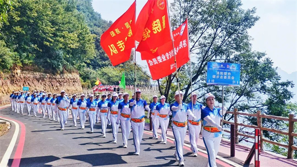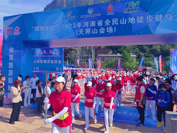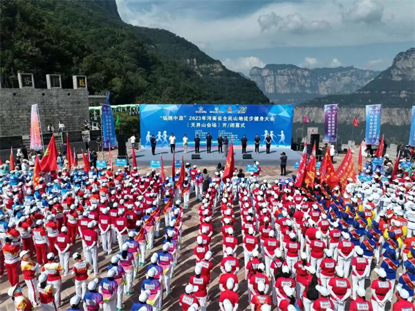 體育旅游新時尚,戶外健身天界山 。9月16日,“錦繡中原”2023年河南省全民山地徒步大會(天界山會場)在國家5A級景區(qū)——八里溝景區(qū)天界山游覽區(qū)盛大開幕。