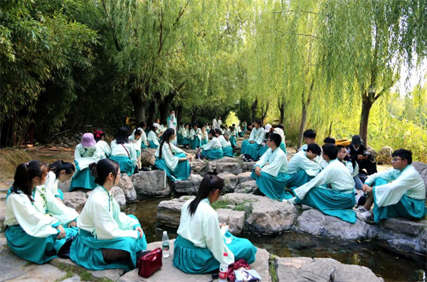 本次大學(xué)生研學(xué)活動,涉及國學(xué)禮儀、曲水流觴、詩書東坡三個研學(xué)課程。研學(xué)過程中,同學(xué)們態(tài)度認真,情緒高漲。