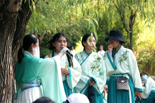 曲水流觴活動中,司禮官還原《蘭亭集序》雅事現(xiàn)場,引導(dǎo)同學(xué)們對詩比拼。一位位才子佳人文思泉涌,活動現(xiàn)場詩詞誦讀聲接連不斷;顒咏Y(jié)束后,大家仍意猶未盡。