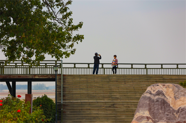 在開封黃河黑崗口觀景臺(tái),文化底蘊(yùn)豐厚的黃河石、憑欄遠(yuǎn)眺的觀景臺(tái),成為一道亮麗的風(fēng)景線,市民游客紛紛前來(lái)打卡游玩。