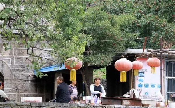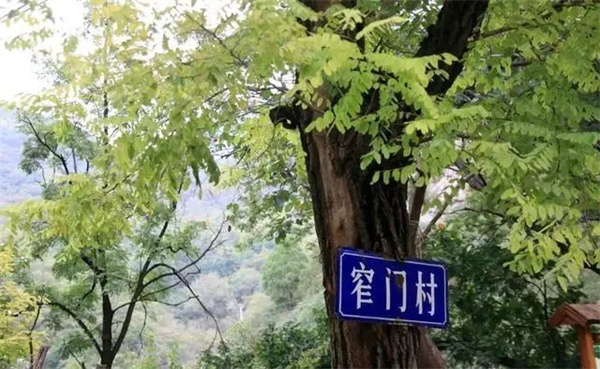 去窄門峽谷一邊欣賞秀麗的風光,一邊聽著鳥鳴,頓覺心曠神怡。順著旅游步道下行大約半個小時,看到這一棵老槐樹,就知道來到了窄門村。