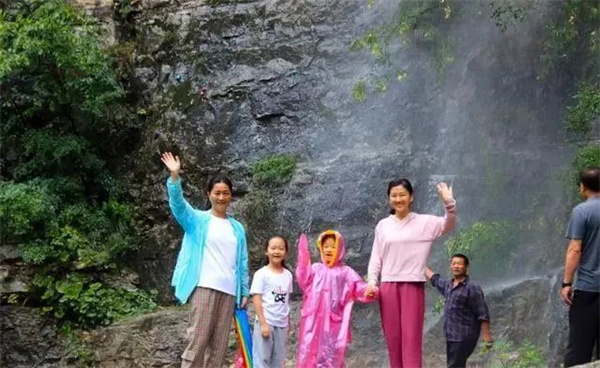 假如你要想靠近瀑布,給瀑布來一張合影照,也不是那么容易。因為是秋涼的季節(jié),只有撐起雨傘和準備好雨衣,才能滿足這樣的要求。