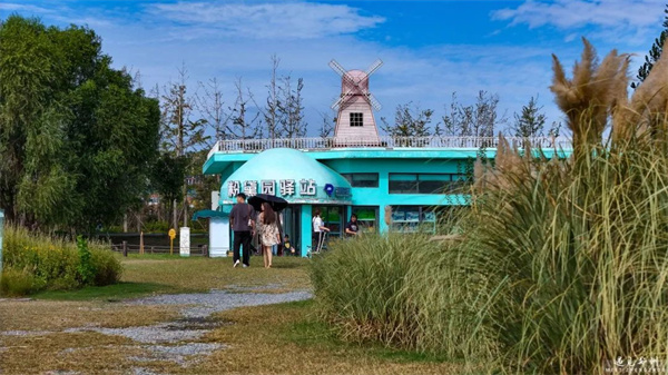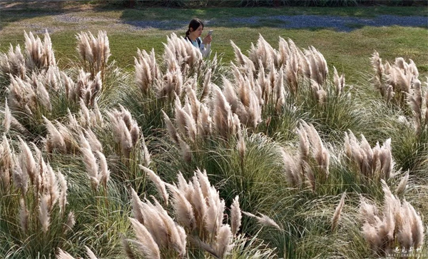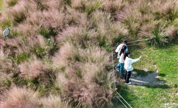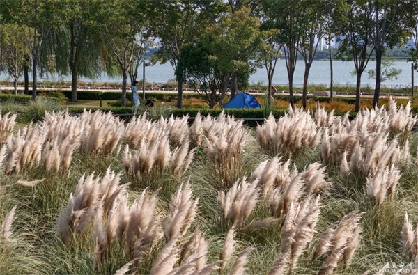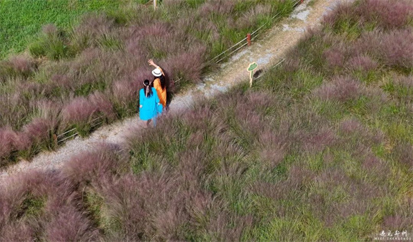 漫步北龍湖畔,粉黛已成花海