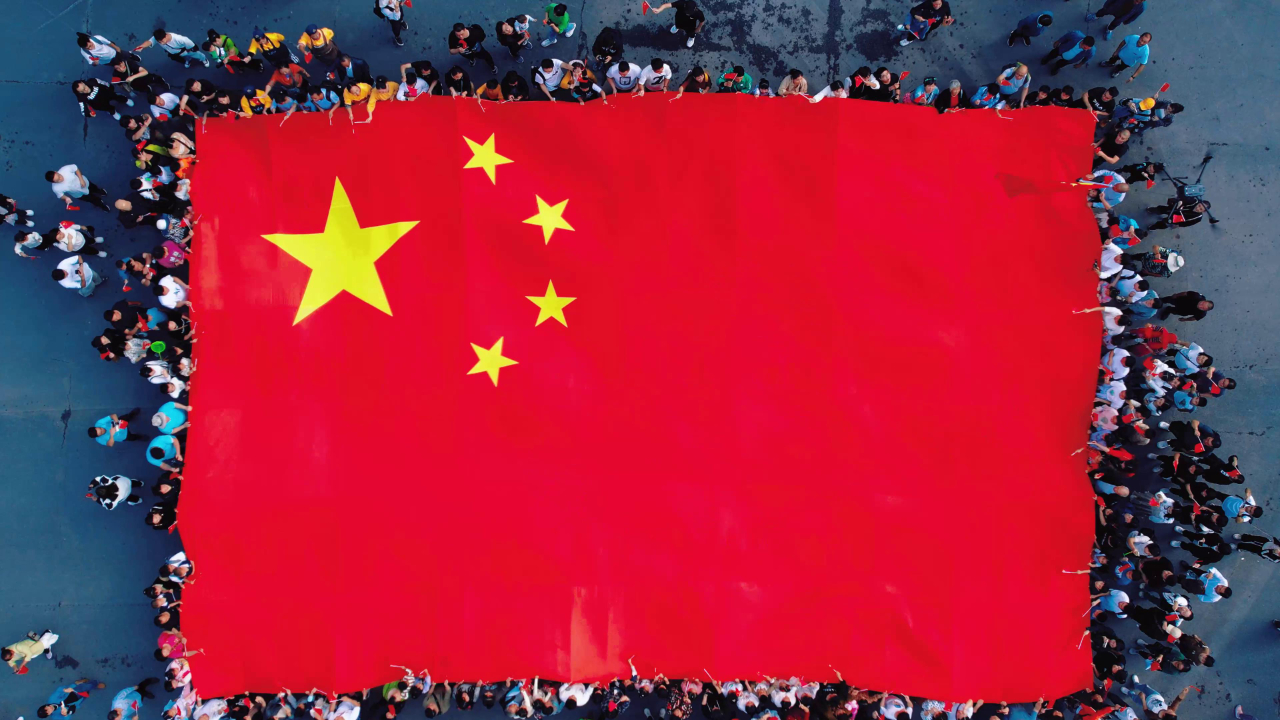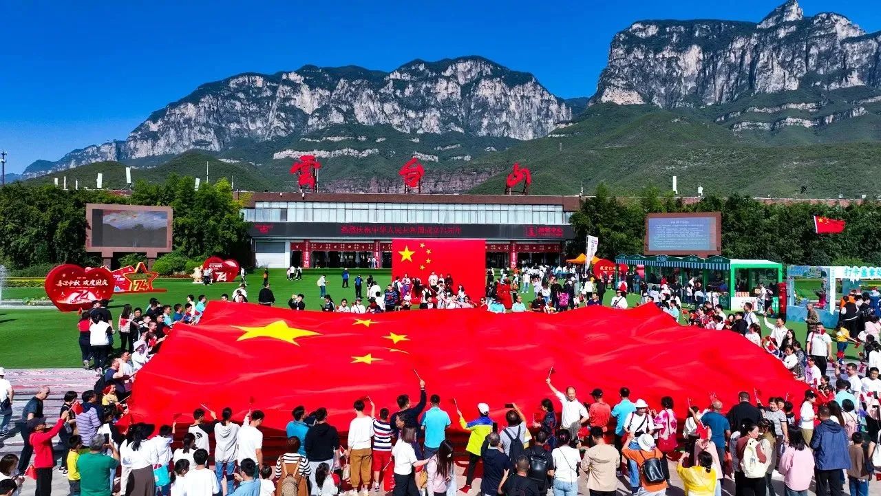 云臺山數(shù)萬游客傳遞巨幅國旗!
