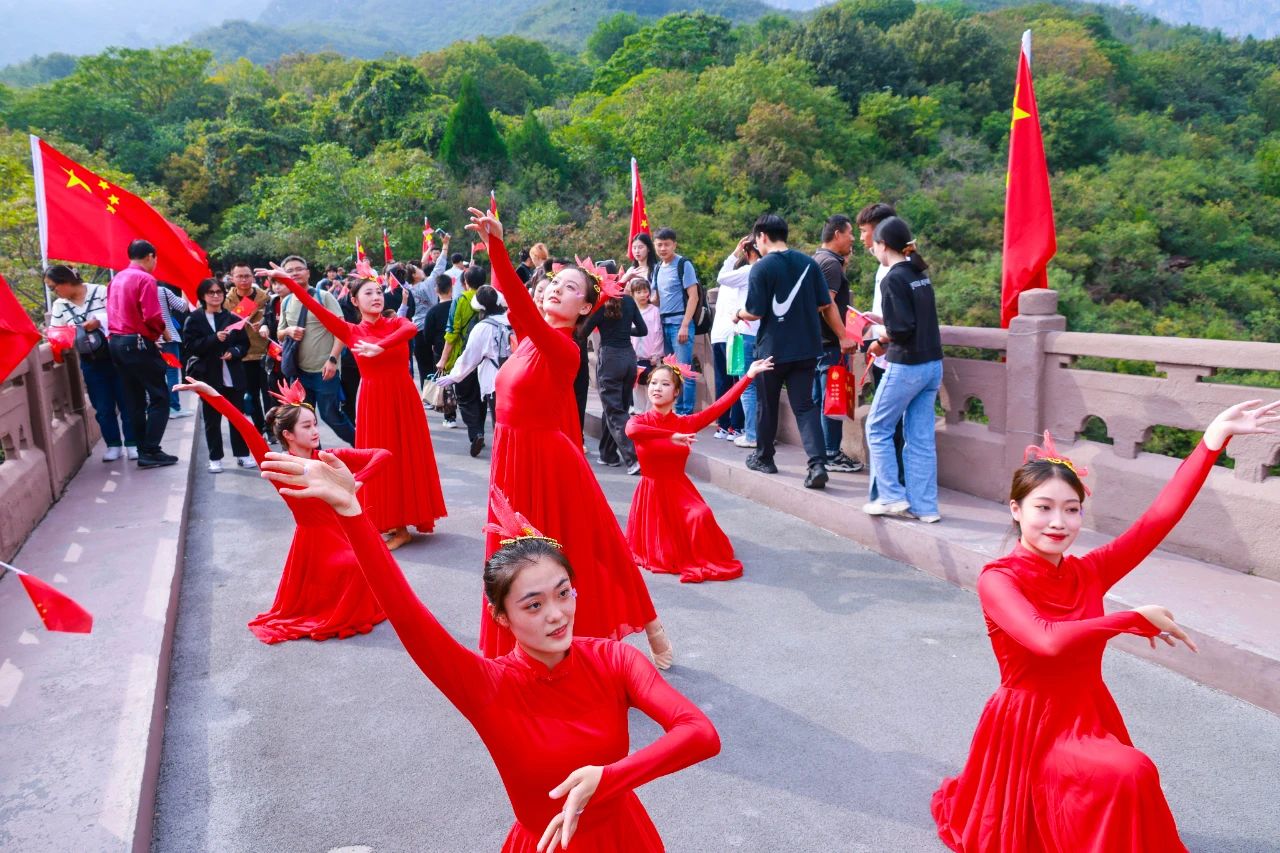 文藝快閃迎國慶,共舞《萬疆》慶繁榮萬名游客揮舞國旗,高唱《歌唱祖國》歌聲深情而嘹亮,五星紅旗迎風(fēng)招展所有游客沉浸在一片喜悅的紅色海洋中。