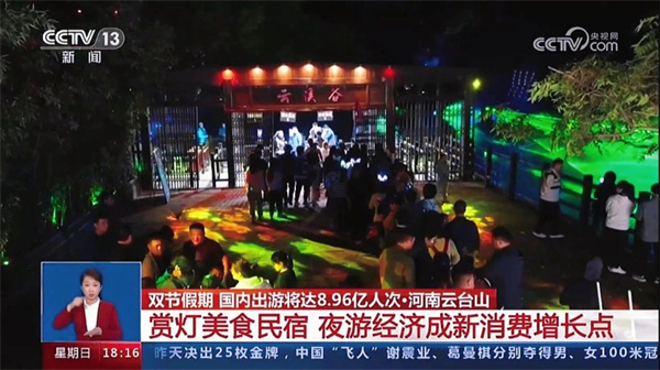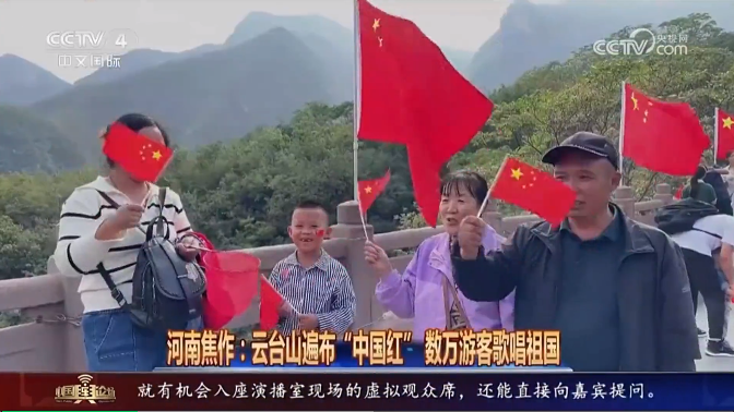 19時(shí)36分CCTV-4中文國際再次報(bào)道云臺(tái)山遍布“中國紅” 數(shù)萬游客歌唱祖國