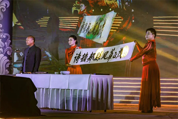 郟縣是個有故事的地方,是千年古縣、中國詩歌創(chuàng)作基地,是中國長壽之鄉(xiāng),是絕味美食品嘗天地,更是文豪“三蘇”追憶之地。軒轅黃帝問道廣成子,曾駐蹕郟縣觀“鈞天廣樂”。諸葛亮來郟拜留侯祠,稱贊郟縣是“清靜秀逸乃龍鳳之地”。三蘇父子葬郟縣,引歷代文人墨客競相拜謁,留下眾多詩篇。毛主席批示大李莊,“農(nóng)村是一個廣闊的天地,在那里是可以大有作為的”,使郟縣成為知青文化的發(fā)源地。大會現(xiàn)場,主持人肖東坡深入百姓中間,和多才多藝的郟縣人民現(xiàn)場互動以詩會友,共話佳節(jié),更有豫劇高手現(xiàn)場清唱《水調(diào)歌頭·明月幾時有》、新生代歌手郭正正演繹《伶人傷》,將戲曲和流行音樂碰撞在一起,別有一番風味。晚會將國潮體驗與文化藝術融合,讓人們?nèi)缤┰焦沤,沉浸在傳統(tǒng)文化的盛宴之中。