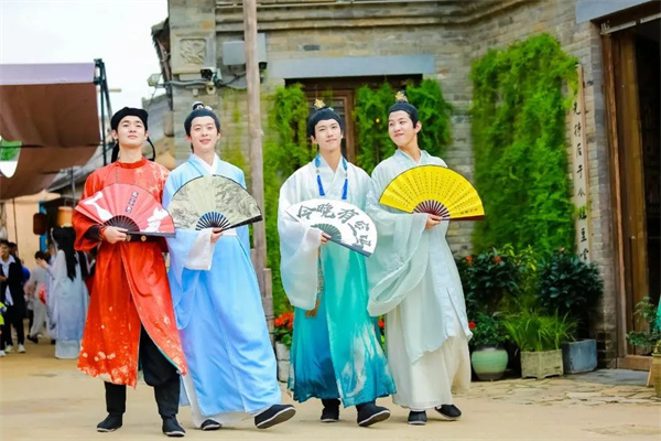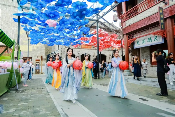國風(fēng)美女帥哥隨處可見,或巡游起舞,或結(jié)伴游玩,這波沉浸穿越感,雅致!