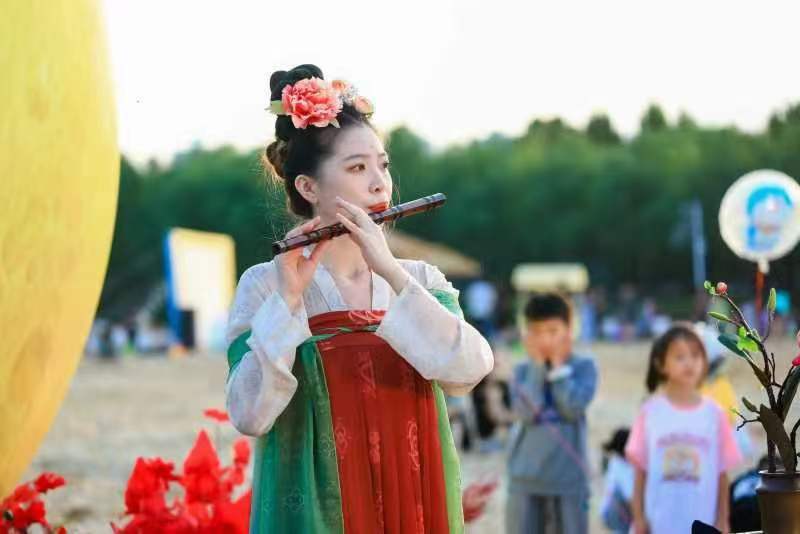 沙灘之上,漁舟唱晚國(guó)風(fēng)音樂(lè)上演,演員們古裝上陣,琵琶、古箏、笙等傳統(tǒng)樂(lè)器余音繞梁,耳熟能詳?shù)臉?lè)曲聲響起讓人們深度感受傳統(tǒng)文化的魅力,體驗(yàn)一種“穿越”千年的既視感,整場(chǎng)演出掌聲、歡呼聲此起彼伏,深受在場(chǎng)市民歡迎。