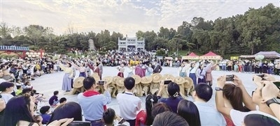 雙節(jié)期間,南陽(yáng)市籌劃開(kāi)展文旅活動(dòng)400余場(chǎng),融合文藝表演、音樂(lè)節(jié)會(huì)等元素,內(nèi)容豐富、形式多樣。鎮(zhèn)平玉文化節(jié)、社旗關(guān)公文化旅游節(jié)、南召“歡樂(lè)HI夜”露營(yíng)文化節(jié)、西峽“千人共舞迎國(guó)慶”大型文化活動(dòng)、方城民俗文化藝術(shù)節(jié)、淅川龍泉豐收節(jié)、新野中秋晚會(huì)等節(jié)會(huì)讓人流連忘返。南陽(yáng)市文化館的戲曲、曲藝、綜藝、合唱專場(chǎng)和少兒才藝展演活動(dòng),南陽(yáng)市博物院中秋巨型月餅市民免費(fèi)分享、節(jié)目表演、專家免費(fèi)鑒寶活動(dòng),吸引廣大市民和游客熱情參與。各鄉(xiāng)(鎮(zhèn)、街道)村(社區(qū))秋季村晚、傳統(tǒng)戲曲、廣場(chǎng)舞、紅歌聯(lián)唱文藝匯演和鑼鼓旱船雜技傳統(tǒng)民俗展演等文化活動(dòng),極大地豐富了市民的節(jié)日生活。