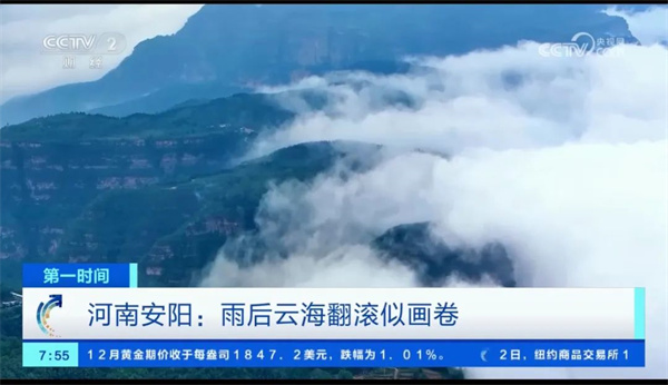 10月3日,CCTV-2 財經(jīng)[第一時間]河南安陽:雨后云海翻滾似畫卷欄目聚焦太行大峽谷。