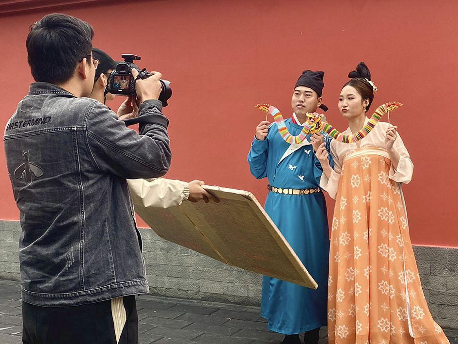 為拉滿氛圍感,南陽漢服文化傳播學(xué)會(huì)提供了一套套漢服,年輕的姑娘小伙現(xiàn)場(chǎng)化妝并穿上漢服,或執(zhí)團(tuán)扇,或舉油紙傘,或提絳紗燈,在紅墻下或行或立,一時(shí)間,他們既是游客,也是藝術(shù)的參與者,既以紅墻為背景,也與紅墻一起成就了每一幀美景。南陽市攝影家協(xié)會(huì)的攝影家則和來自各地的攝影愛好者一起,用鏡頭定格下獨(dú)屬于這堵紅墻的風(fēng)景。“這種活動(dòng)年輕人非常喜歡參加。”南陽漢服文化傳播學(xué)會(huì)會(huì)長(zhǎng)陳燕麗說,南陽是漢文化的重要發(fā)祥地,參加本次活動(dòng),希望有更多人感受到傳統(tǒng)文化的魅力,喜歡上漢文化,“今后我們也會(huì)更多地思考漢服文化與中醫(yī)藥傳承方面的結(jié)合,在弘揚(yáng)仲景文化上作出我們應(yīng)有的貢獻(xiàn)。”