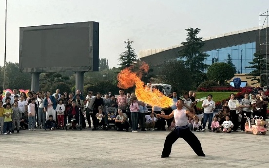 花博公園內(nèi)進行雜技表演 馬東 攝
