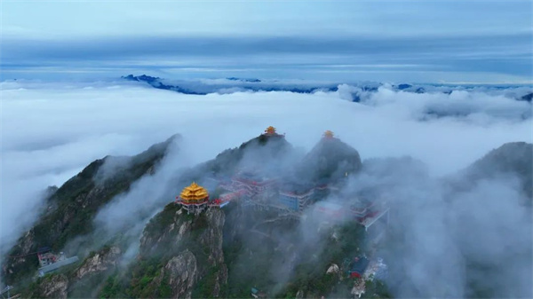 近日的老君山秋雨瑟瑟,因山頂濕度大,動人的云海也屢屢頻現(xiàn),在山谷間緩緩涌動。