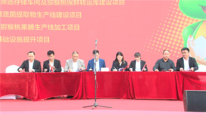 ▲①3000噸香菇篩選存儲(chǔ)車間及獼猴桃保鮮、轉(zhuǎn)運(yùn)庫建設(shè)項(xiàng)目,②年產(chǎn)500噸果蔬菌提取物生產(chǎn)線建設(shè)項(xiàng)目,③年產(chǎn)3000噸獼猴桃果脯生產(chǎn)線加工項(xiàng)目,④老界嶺景區(qū)基礎(chǔ)設(shè)施提升項(xiàng)目4個(gè)項(xiàng)目雙方代表簽約