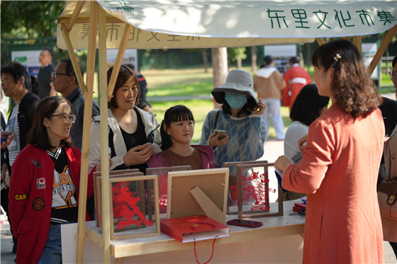 當(dāng)天上午,一聲“東里文化市集開市啦!”拉開藝術(shù)周帷幕。在市集的各個攤位前,文化、非遺、民俗、景區(qū)、文創(chuàng)、特產(chǎn)、美食等特色產(chǎn)品,吸引了不少市民駐足觀看。