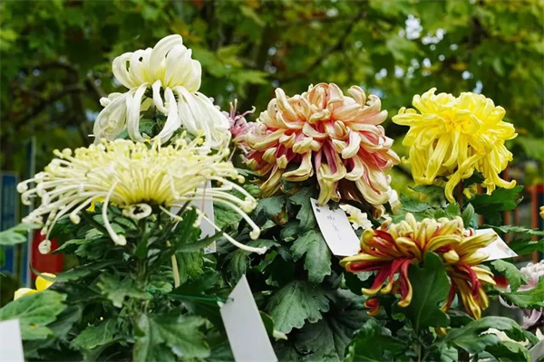 200余種菊花絢麗綻放,前來觀展的游客絡(luò)繹不絕,或彎腰聞香,或駐足拍照,現(xiàn)場一片歡聲笑語。在各種菊花小品、打卡場景前,不少游客掏出相機或手機合影,留住美麗瞬間。