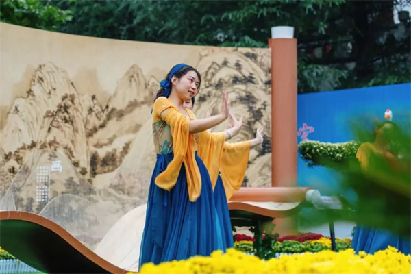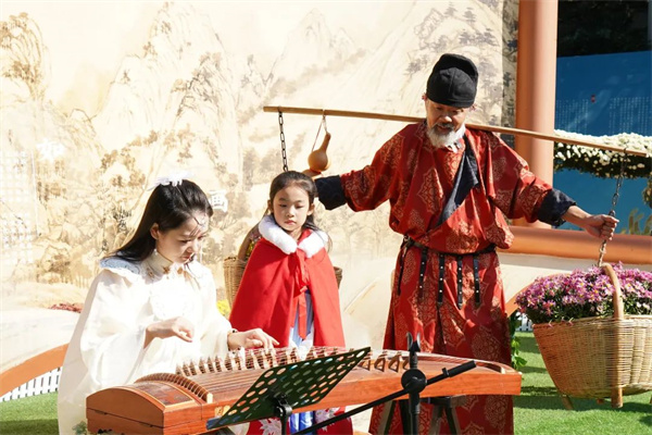 在供游客賞菊的同時,景區(qū)還有冰菊物語茶藝、古箏演奏、國風(fēng)快閃等互動節(jié)目演出,特別是洛陽網(wǎng)紅貨郎穿越到雞冠洞變身“菊花翁”,與賞花游客互動表演,游人與美景融為一體,流連忘返,樂在其中。