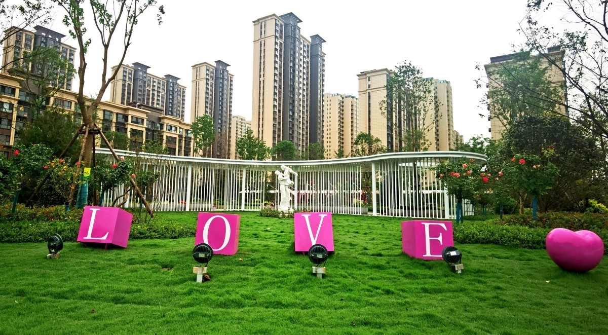 和造字園不同,位于五一路與金堤路交叉口東北角的心悅愛情公園,則呈現(xiàn)了另一個主題“愛情”。公園通過雕塑小品及功能分區(qū),將青年人之間相識、相知、相愛的戀愛過程通過穿針引線的手法徐徐展開。游走在愛情園,對新時代愛情生活的美好和浪漫感覺油然而生。