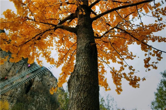 古靈山上,銀杏也不甘落后,爭先恐后換上金色的衣裳,為秋天增添了一抹濃厚的色彩。