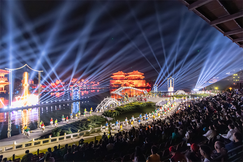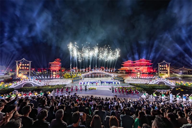 開幕式現(xiàn)場,大河財立方記者還看到,一批精彩舞蹈、歌曲接連上演,現(xiàn)場氣氛熱烈,一個充滿活力的開封形象在表演中盡情展現(xiàn)。文藝演出以跨越開封千年時空為主線,分上篇《千年的汴京》、下篇《時代的開封》兩大部分6個節(jié)目,以無縫連接的不同情境轉(zhuǎn)換形式進行舞臺呈現(xiàn)。