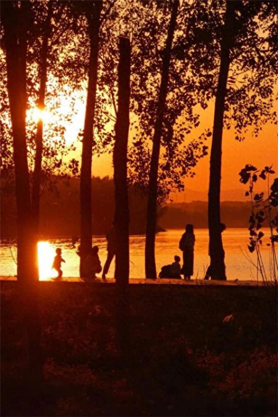高高的樹(shù)木,橘紅的落日,嬉戲的人群,美麗的剪影,這是一個(gè)平凡而美好的生活瞬間。(仝小磊攝)