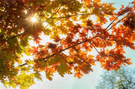秋日的陽(yáng)光穿過(guò)楓葉的間隙,形成了一片美麗星芒,給人以夢(mèng)幻的感覺(jué)。紅黃相間的楓葉完美融合,如同大自然的調(diào)色板,展示了秋天最美的色彩。(朱忠海攝)