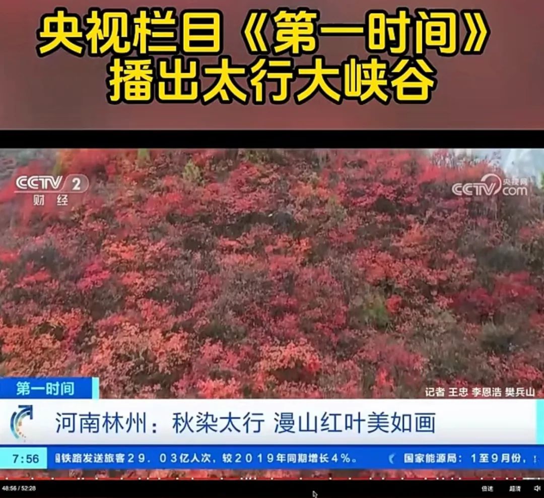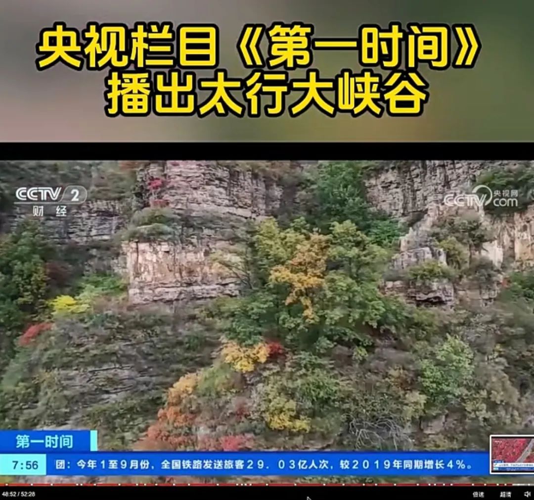10月24日 星期二 7:56,CCTV2—央視財經(jīng)頻道將鏡頭對準了太行大峽谷如畫的秋色,如此美麗的景色當然要跟全國觀眾一起分享!