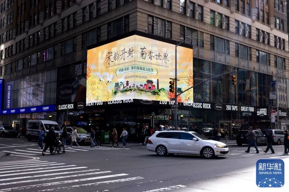 北京時(shí)間10月23日,中國·開封第41屆菊花文化節(jié)的巨幅海報(bào)登上美國紐約時(shí)報(bào)廣場的戶外大屏,將古韻盎然的城建特色與滿城菊花競相開放的秋日盛景送至大洋彼岸,傳遞出“宋韻開封、菊香世界”的美好用心,并誠邀全球友人到開封旅游觀光。