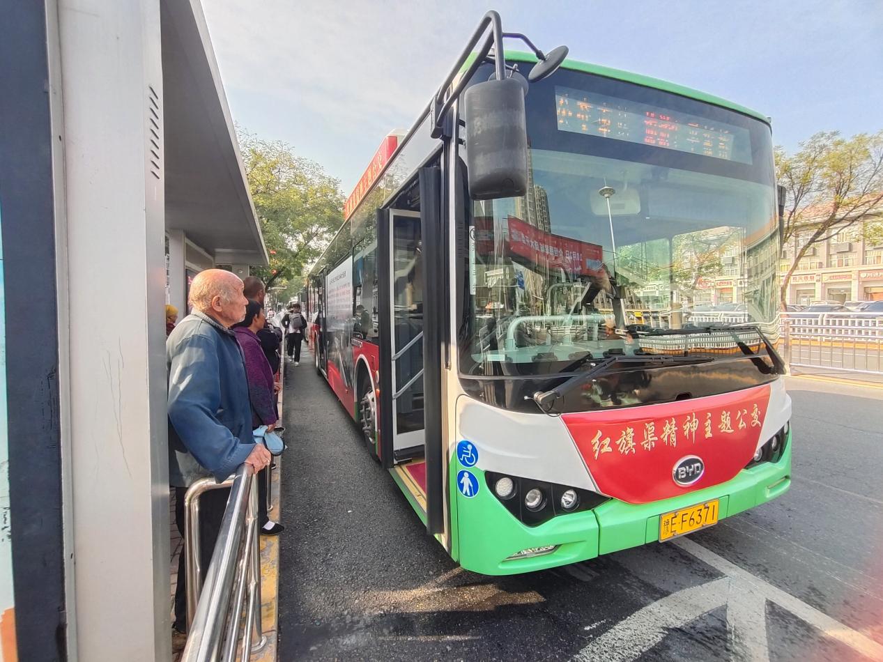 在公交車站,一輛以紅色為主色調的公交車緩緩進站,車身張貼的紅旗渠宣傳照片,在藍天白云的映襯下格外醒目,成為林州市區(qū)一道靚麗的風景線。