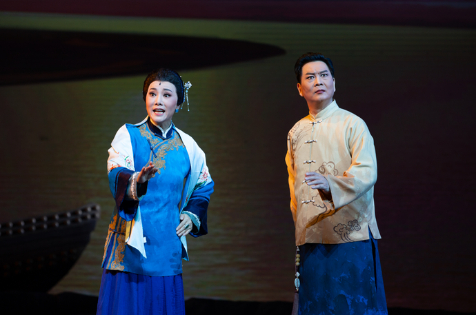 據(jù)了解,豫劇《黃河兒女》是鄭州市豫劇藝術(shù)中心2021年新編創(chuàng)排劇目,2022年成功入選國家藝術(shù)基金大型舞臺(tái)劇資助項(xiàng)目。該劇講述了一個(gè)發(fā)生在抗日戰(zhàn)爭時(shí)期的“黃河故事”,以吳若蘭為代表的民族商人在民族危亡關(guān)頭,所展現(xiàn)出的愛國情懷和民族精神,是一部大力弘揚(yáng)愛國主義、家國情懷的主旋律正劇。