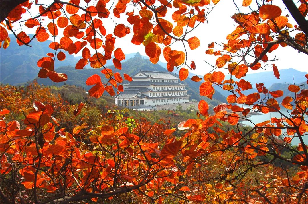 河南黃河三峽紅葉,紅得厚重,紅得廣闊,天地交輝,山水相映。