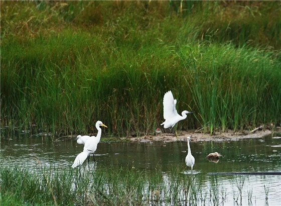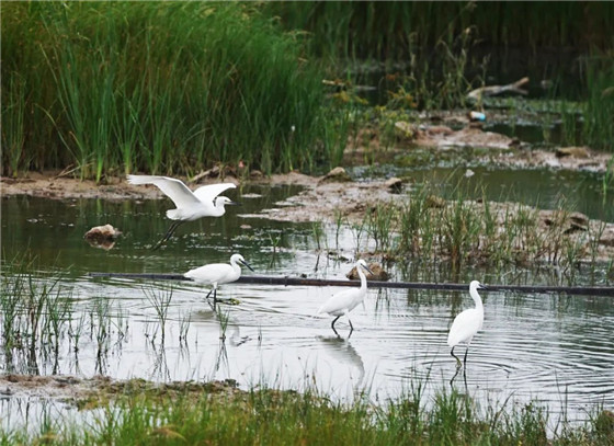 正在戲水的白鷺 鄭報全媒體記者 黃余洋 攝