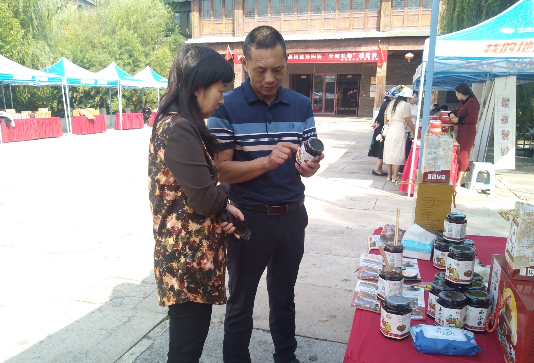 本次活動共分三大部分,30余種產(chǎn)品分農(nóng)副產(chǎn)品深加工類、民間藝術(shù)類、文化創(chuàng)意類。農(nóng)副產(chǎn)品深加工類主要是利用當(dāng)?shù)靥厣r(nóng)副產(chǎn)品進(jìn)行深加工的產(chǎn)品,包括菊花茶、豆醬、食品、釀酒等;民間藝術(shù)類是采用民間技藝制作的各類旅游產(chǎn)品,如朱仙鎮(zhèn)木版年畫、烙畫、宮燈等;文化創(chuàng)意類主要是依托地域文化開發(fā)的文旅文創(chuàng)產(chǎn)品,包括鍛造產(chǎn)品、模型制作、盤鼓制作產(chǎn)品等,產(chǎn)品大多結(jié)合地域特色,經(jīng)過文化創(chuàng)意開發(fā)的旅游產(chǎn)品。