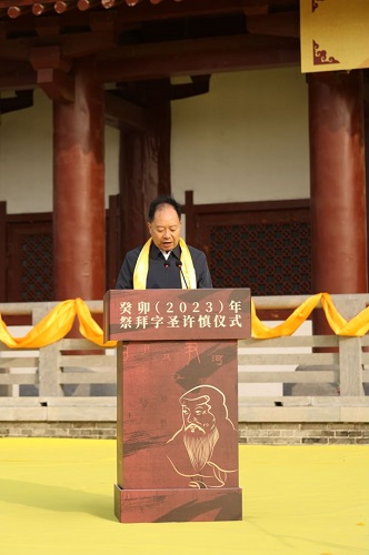 當(dāng)天上午9時(shí),癸卯(2023)年祭拜字圣許慎儀式在許慎文化園字圣殿廣場(chǎng)舉行。漯河市政協(xié)主席王克俊,市六屆政協(xié)主席張社魁,市委常委、宣傳部部長(zhǎng)馬明超,省文字學(xué)會(huì)會(huì)長(zhǎng)、河南大學(xué)甲骨學(xué)與漢字文明傳承發(fā)展研究中心主任王蘊(yùn)智,高校專家學(xué)者、中小學(xué)代表、許學(xué)愛(ài)好者及社會(huì)各界代表等參祭。副市長(zhǎng)吳玉培主持祭拜儀式。