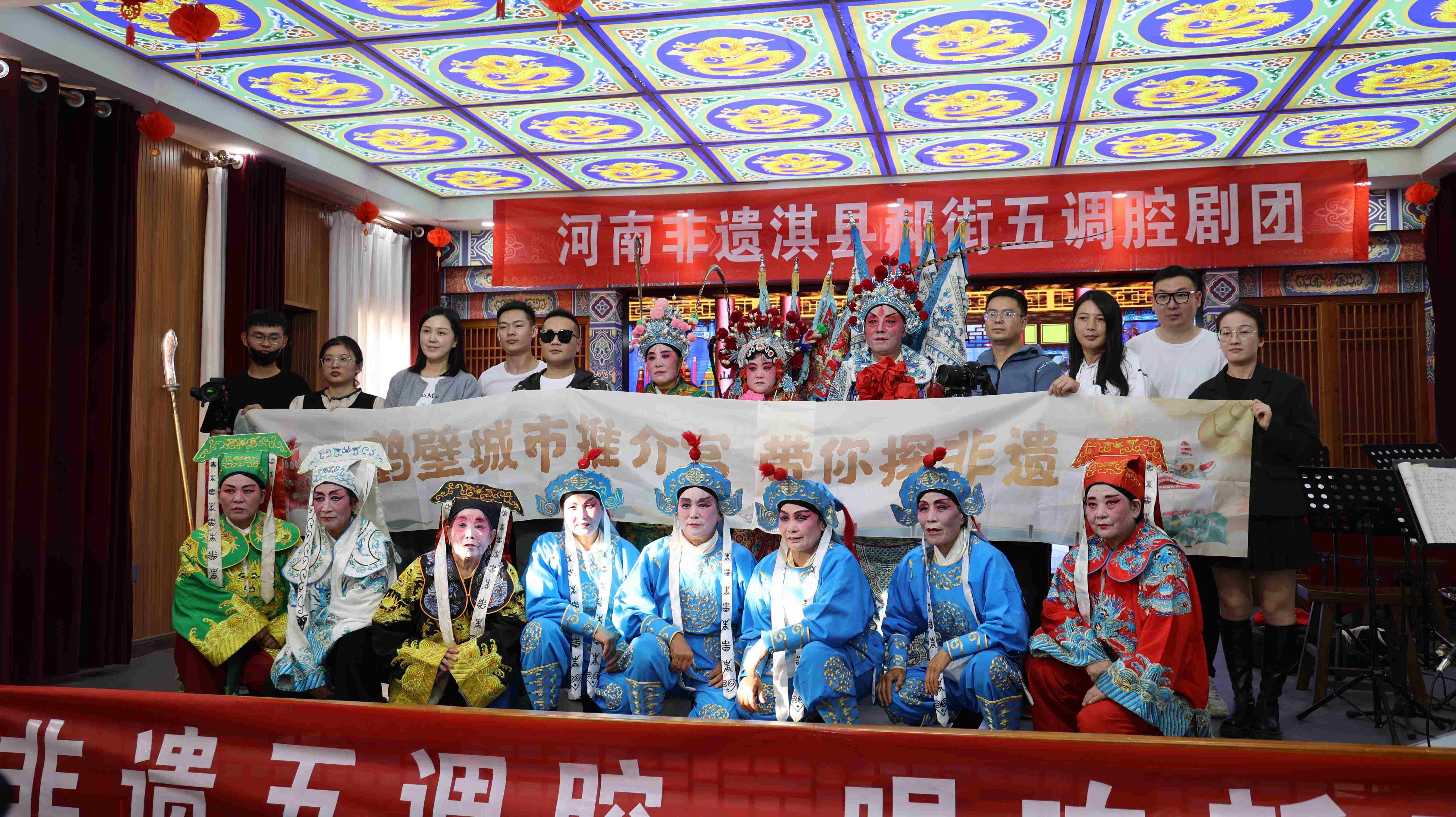 鶴壁文旅達人團成員與淇縣五調腔劇團合影 王玉姣 攝